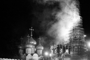 3月15日,在俄罗斯莫斯科,新圣女修道院燃起大火。
