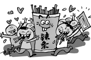 辣条最近被网民称为“史上最牛零食”。这种袋装小食品看似不起眼,却出现在几乎所有菜市场、小卖部的货架上,在网上也卖得十分火爆。其消费群体主要是中小学生、农村留守儿童。事实上,不管名字如何动听,辣条无外乎由“面粉+辣油+食品添加剂”制成,且生产者多是卫生条件差的黑厂和小作坊。