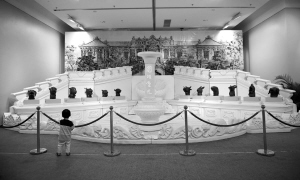 3月17日,一名小朋友在观看十二生肖兽首仿制品。