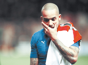 阿森纳队球员沃尔科特在比赛后难掩沮丧