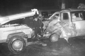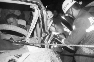 本报讯 3月17日晚上,在106省道太康县龙曲镇境内,一名中年男子酒后驾车与一辆货车相撞。该男子驾驶的面包车严重受损,他被卡在车中无法脱身。最终,消防官兵将其救出。