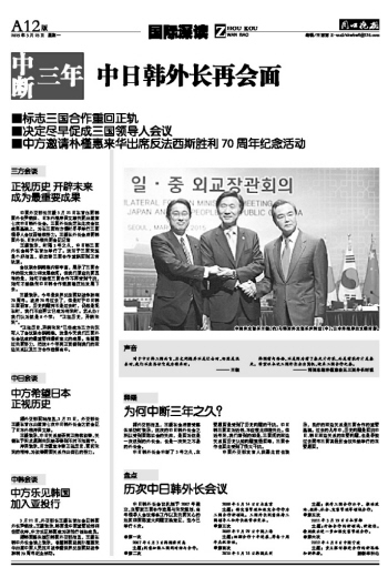 三年 中日韩外长再会面