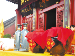 值得注意的是,参与此次祭祀大典的伏羲贡酒和陈州府酒都是当地知名白酒品牌,其中伏羲贡酒是周口白酒业的龙头企业——河南祥龙四五酒业新开发的新品牌,具有深厚的文化底蕴,是河南祥龙四五酒业开拓国内白酒市场的又一主要品牌。而陈州府酒是周口白酒业的后起之秀——河南陈州府酒业的佳酿,其进军市场的力度也是咄咄逼人,显示了周口白酒业的市场强劲之势,展示了在这片祖先开创的文明土地上,后代子孙传承文明、躬耕祖业的不息信念。