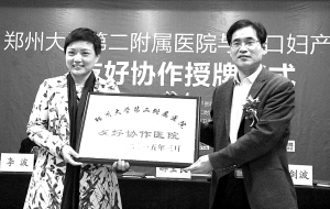 周口市卫生局局长郝宝良和郑州大学第二附属医院刘剑波院长现场为周口妇产医院授牌。郝宝良高度肯定了周口妇产医院与郑州大学第二附属医院的友好协作关系,希望两院能薪火相传,以全市妇女健康为己任,充分利用合作关系,不断提高周口妇产科专业诊疗技术,为广大周口妇女就医提供便利条件。