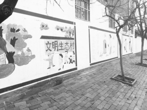 文明公益漫画墙则是港口物流产业集聚区高店社区的“主打歌”,一幅幅主题鲜明的漫画是社区一道亮丽的风景(如图)。高店社区以“中国梦”和“创建文明城市”为载体,绘出了一幅幅与居民生活息息相关、不同主题的文化墙,内容涉及二十四孝、环境保护、爱国卫生等,将色彩绚丽的文化墙与和谐社区建设相结合,提升居民的家园意识,营造和睦的邻里氛围。