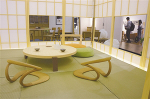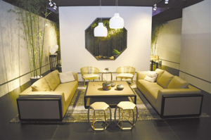 物尽其用,是中国文化里的一种精髓,在现代家具中,新型材料的使用、不要求过多装饰、以木纹的清丽之色示人,也成为中式的现代时尚。在广州展的上坐家居展位上,茶几上的波纹处理凸显天然实木的素材感,转角沙发边框简单轻便,但是座面和靠背给人足够的舒适感,通透的屏风设计,也给空间带来透气感,营造出静谧禅意的生活场景,令人心神舒朗、恬淡安然。(冯静)
