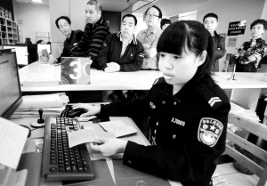 4月1日,浙江省武义县行政服务中心户籍民警为市民办理户籍变更关系。