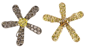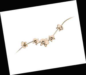 简洁的几何图形排列,也可以产生花形。不会像具象之花那么线条柔美反复,珠宝小而精当,有现代女性的干练之风,但又不失闪耀。宝格丽的做法,偏向“自由、随和”风格,镶满钻石的宝石在热闹的金黄色中衬托得格外夺目,既前卫又奢华。