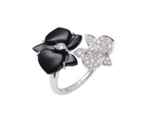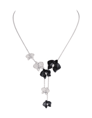兰花本身就有君子之称,华贵是其气质。而兰花化为首饰,线条简洁流畅悠长,风韵独到,更好地凸显了成熟女性神秘优雅又淡泊之风韵。相应地,颜色也多为简洁的单色,如黑白或黄金与白钻搭配,都是以色彩上的强烈对比,令兰花首饰造型更为线条灵动。