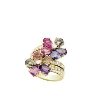 蓝宝石花系列黄金戒指