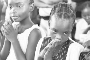 图为4月5日,在肯尼亚加里萨市一教堂,孩子参加悼念袭击事件遇难者活动。