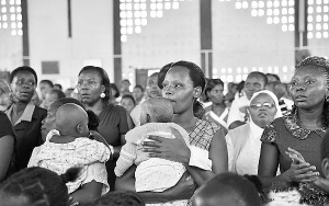 图为4月5日,当日,肯尼亚加里萨部分民众来到当地教堂,参加悼念袭击事件遇难者活动。肯尼亚总统肯雅塔4月4日宣布,肯尼亚全国从4月5日开始默哀三日、降半旗,悼念4月2日东北部城市加里萨一所大学袭击事件中的死难者。