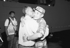 走下军舰的中国驻也门大使田琦告诉记者:“昨天踏上临沂舰,心里就踏实多了,因为就等于踏上了祖国的国土。”