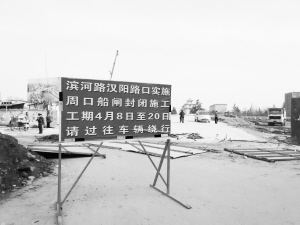 记者从市交通局了解到,为确保周口船闸交通桥在4月底建成并投入使用,进一步缓解周口市区南北通行交通压力,施工部门于4月8日至20日对汉阳路与滨河路交叉口实施封闭施工,禁止机动车通行,需要驾车途经该路口的市民最好改道绕行七一路、交通大道、中州大道或龙源路。