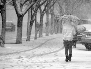 4月12日,在辽宁省朝阳市街头,市民冒着雨雪出行。 当日,辽宁省朝阳市迎来雨夹雪天气。新华社发