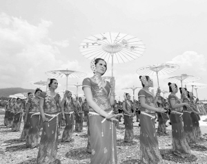 当日,在云南省西双版纳傣族自治州,数万名各族群众和国内外游客欢聚澜沧江畔,欢庆傣历1377年新年节。新华社记者 杨宗友 摄