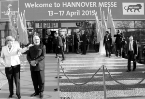 新华社德国汉诺威4月12日电 (记者饶博 唐志强) 2015年汉诺威工业博览会开幕仪式12日晚在德国汉诺威举行,德国总理默克尔和印度总理莫迪出席开幕式并发表讲话。
