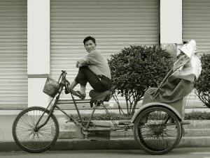 开三轮车的人岁数不大,是个黧黑而又粗壮的小伙子。他对我那生硬的招呼很反感,冷眼瞪着我,不言语,也没下车。