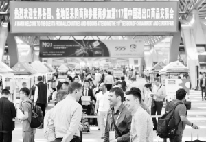 4月15日,广交会开幕,各国采购商步入广交会展馆。