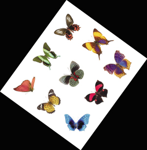 我最感兴趣的是我国云南的一种蓝、白、红相间的小蝴蝶,叫不上名,但它的色泽格外纯真,很有立体感,小巧玲珑、活灵活现,好像在空中翩翩起舞,我多么想用手摸一下,太可爱了!