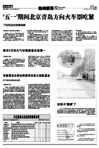 本报讯 4月22日,记者从周口火车站了解到,从售票情况来看,“五一”期间我市发往北京、青岛方向的火车票开始紧张,而其他方向的火车票相对充裕。