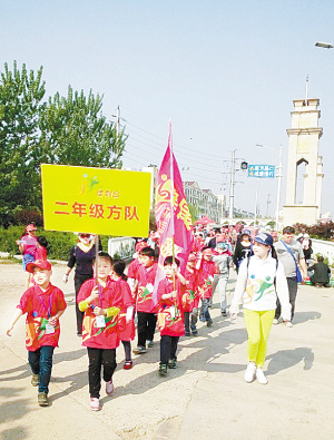 当行至文昌大道时,个别小记者渐渐跟不上队伍了,显得有些“溃不成军”,甚至不顾家长的劝说和激励,开始哭鼻子了。但是,他们后来在带队老师和家长的一再鼓励下,最终还是完成了约5公里的行程。当第一拨方队顺利到达目的地时,时针指向了9时50分,此时,返回的队伍中顿时响起了一片欢呼声。