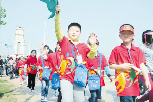 本报讯 4月25日上午,阳光明媚,200多个本报小记者家庭参与的“亲子健步走”活动正如火如荼地进行着,一路上,八一大道、滨河路、大庆路桥等处都闪动着小手拉大手的身影。据统计,除小记者家庭成员以外,佳利地产业主、川汇区人和办事处居民及各社会团体人士约千人,共同参与了这一全民健身活动。