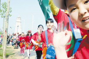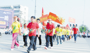 当日上午8时40分许,包括小记者在内的近千名参赛队员共同组成了6个方阵,他们身穿统一制作的T恤,浩浩荡荡地从佳利地产营销中心出发,沿八一大道、滨河路、大庆路、文昌大道一路前行。当日,身穿红色T恤、头戴小红帽的周口晚报小记者组成的方阵格外抢眼,无论是媒体的记者还是临时凑场的拍客,纷纷把相机镜头对准了朝气蓬勃的小记者。一路上,大家欢声笑语不断,边看城市变化,边赏沙河美景。
