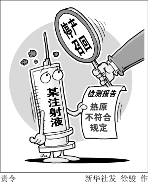 赵起介绍说,检测报告中所指的“热原不符合规定”,可能的原因是药品生产过程中,注射液中的微生物没有消除干净,或者是细菌被杀死后尸体分解出的内毒素残存。这样的产品注射到人体后,人体的免疫系统抵御毒素侵袭,就会引发寒战发热等症状。