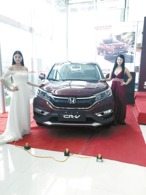 4月26日下午,东风本田周口瑞盈4S店举行“芯动 行动”2015款CR-V上市品鉴会,图为新车发布会现场。