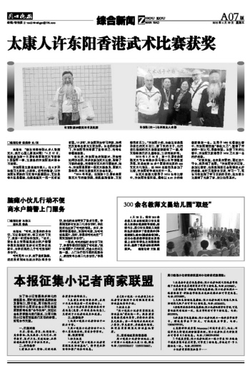 本报讯 “能在香港给那么多人表演武术,我打心眼儿里高兴啊!”4月27日,说起参加第十三届香港国际武术节获得3项冠军一事,太康县的许东阳高兴得合不拢嘴。