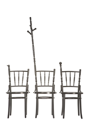 椅子和衣架可以组合在一起?对于现代人的小空间居室来说,能够一物多用绝对能节省不少空间。一把椅子多重功用,除了坐还可以悬挂外套,山毛榉木作为材料足够坚固。