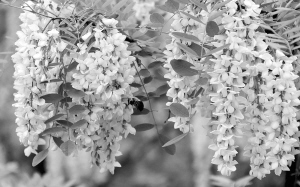 瞅着高高的槐树,我在想,我怎么不会爬树呢,那样我就可以把槐花摘满衣兜,把妈妈的味道带回家。遗憾地走过,淡淡的甜,淡淡的香一直跟着走出很远。回头望,一串串玉色花嘟噜在月光下朦胧。
