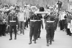 4月30日2时15分许,郑州交巡警二大队民警曹伟处理交通事故时,被一高速行驶的醉驾轿车撞击,当场牺牲,年仅38岁。从警20年,曹伟多次被授予交警执法标兵、先进个人称号。5月4日,曹伟的追悼会在郑州市殡仪馆举行,近千名市民自发前来为他送别。 谢岩鹏 摄
