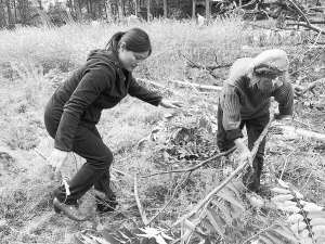 王老太家的香椿树长得太高了,王老太想吃香椿却够不着。买红霞在社区转悠时看到王老太发愁,就上前帮王老太摘香椿。