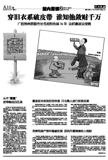 穿旧衣系破皮带 谁知他敛财千万