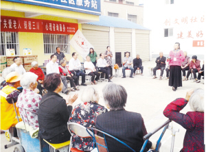 5月6日下午,川汇区红十字会十多名志愿者来到川汇区小桥办事处建东社区,为21名老人讲解心理健康知识,并为他们表演戏曲等文艺节目,受到老人们的欢迎和称赞。