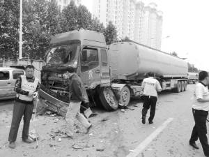 现场接受交警调查时,大货车司机田先生站在车边惊魂未定地说:“我的车上装的是酒精,从南阳运往商丘。我驾驶货车自西向东正常行驶,而且行驶在第二车道。那辆小轿车自东向西行驶,该走北侧车道,况且当时北侧车道也没有车,但司机却驾驶车辆跨过双黄线,跑得飞快,开到南侧第二车道迎面撞向我的车。尽管我紧急避让拉了一把方向盘,结果那辆小轿车还是撞在了车轮上,随后被弹到路北侧。如果我不躲,整个小轿车就会钻到货车下,后果会更严重。发生事故后,我立即打了110,当时是11时13分。”