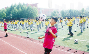 本报讯 颠球、带球、传球……近日,在周口文昌小学足球场上,近200名学生尽情地奔跑着,用他们的双脚传递着足球带来的快乐与活力。该校学生在体验中感受到“快乐足球”的魅力。