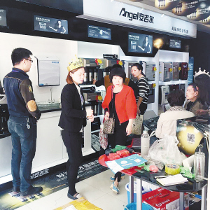 记者昨日获悉,安吉尔饮水产业集团新研发的A8净水器正式亮相我市,大通量无罐净水器将“高端净饮水专家”的品牌定位完美融合于产品中。这是继A6净水器上市半年就取得销量突破10万台的佳绩后,安吉尔推出的又一高端品牌。图为顾客在市区安吉尔育新街店内选购新产品。