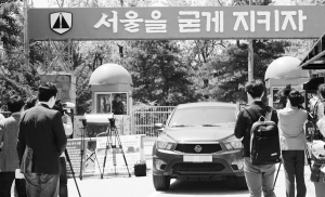 5月13日,在韩国首尔,记者在事发预备军训练场外守候。