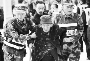 5月14日,西藏吉隆县江村附近的桑清边防检查站武警在帮助村民撤离。