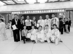 周口太极高手们这次共捧回了16个优胜奖、4个优秀奖,每个人都有优胜奖进账,在28支代表队中名列前茅。其中,李其阁获陈氏传统拳和49式太极剑双优胜奖、姬秀荣获竞赛套路42式太极拳和武当太极剑双优胜奖、刘萍获24式简化太极拳和32式太极剑双优胜奖、王文君获陈氏传统拳和49式太极剑双优胜奖、刘艳茹获杨氏40式太极拳和32式太极剑双优胜奖、刘俊霞获竞赛套路42式太极拳和42式太极剑双优胜奖,张建国获太极单刀优胜奖、杨子英获陈氏传统拳优胜奖、胡世民获陈氏传统拳优胜奖、郝世成获陈氏49式太极剑优胜奖。