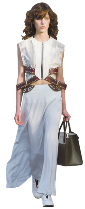 无论什么样的定位,总有符合它们的几个代表款式。麂皮与流苏是嬉皮士的标配,装饰主义是巴洛克的代名词,肩章与金属纽扣是军装的符号,而图腾与铆钉是摇滚青年的标志。逆龄的装扮绝少不了露胃装、短裤、荷叶边与平底鞋之类年轻符号十足的款式。(郭宏伟)