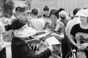 本报讯 5月18日,周口市通信传输局与驻周解放军某部共同开展护线宣传活动,向市民宣传和讲解保护光缆线路的重要性(如图)。