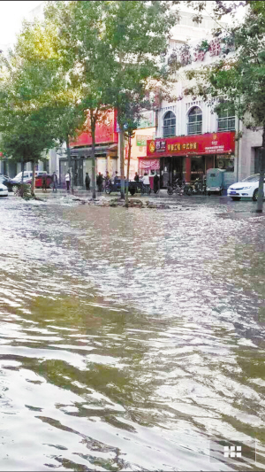 本报讯 昨日,周口市区汉阳中路自来水管爆裂(如图一)。涌出的自来水向南流到交通大道,向北流到七一路,水最深处近20厘米。受其影响,市区许多居民家中停水。