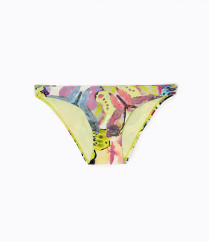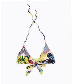 充满活力,展现着青春色彩。 Zimmermann 的比基尼虽然设计简约但却不简单,点、线组成的花朵印花充满艺术气息,蓝绿色调为炎热的度假季节带着清凉的感受。