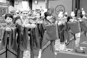 5月24日,安徽省黄山市歙县举办首届汉式集体婚礼,24对新人身着汉式婚礼袍服,依次进行拜堂、沃盥、对席、同牢、合卺、结发、执手礼等,再现了中华传统婚典文化的古韵之美。新华社发