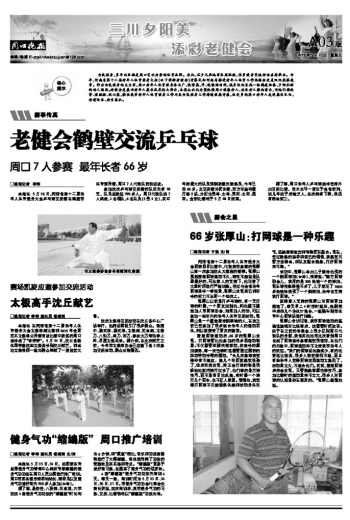 张厚山告诉记者,我市网球运动的基础设施相对比较落后,这需要时间改变。由于在之前的老健会上很少见到周口代表队的身影,我省其他地市此次看到周口也派了网球选手参赛感觉很惊讶,在他们的印象中,网球运动并不太受我市老年人的欢迎。“我们的网球场地确实少,有的收费还比较高,很多人都觉得玩不起,而且有些老年人觉得网球这项运动太激烈了,活动量太大,不适合他们。其实,接触网球后你会发现,只要熟练掌握击球技巧,参加比赛时的运动量并不太大,很多人对网球的认知是存在误区的。”张厚山感慨地说。