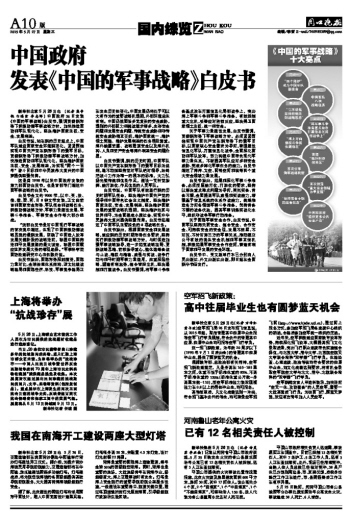 发表《中国的军事战略》白皮书